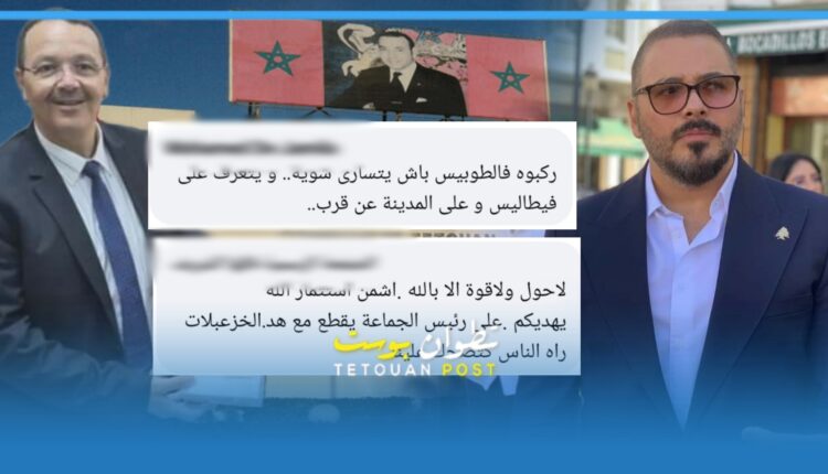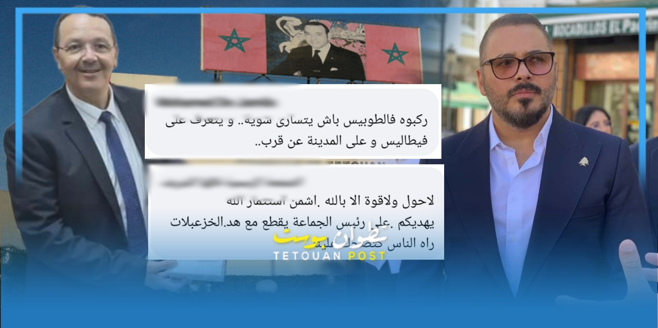 ” لاحول ولا قوة الا بالله، أشمن استثمار الله يهديكم، على رئيس الجماعة يقطع مع هاد الخزعبلات، راه الناس كضحك علينا “، رسالة من أحد المواطنين، تحمل في طياتها رسائل عديدة لرئيس جماعة تطوان، من أجل البحث عن حلول حقيقية لتحريك العجلة الاقتصادية في المدينة وخلق فرص شغل للشباب، وتفعيل الوعود الانتخابية على أرض الواقع.
