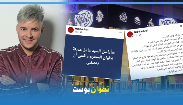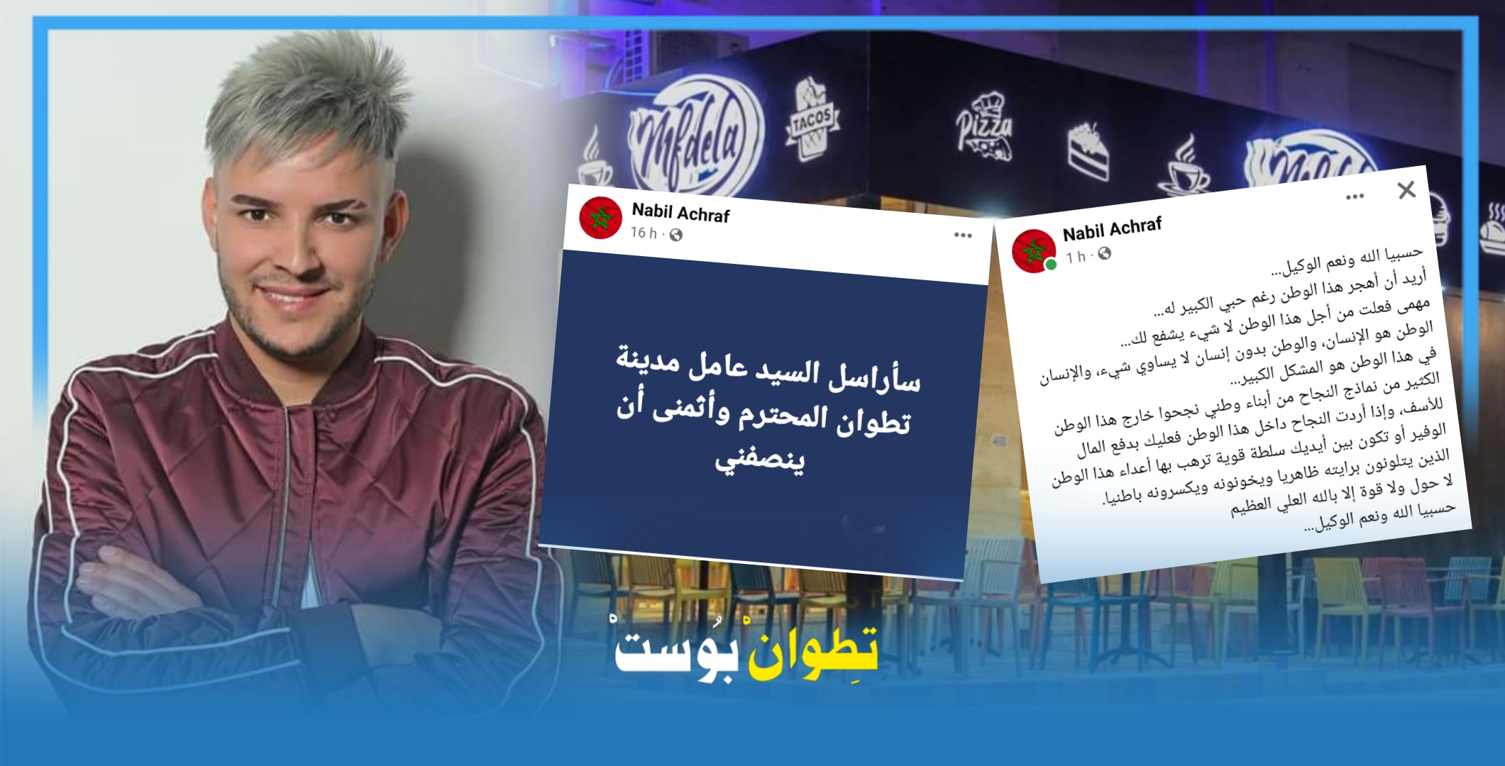 نبيل أشرف فنان طموح شق طريقه في عالم الفن وأدار ظهره لبلاد المهجر في أكثر من مناسبة حبا في وطنه الذي احتضنه منذ ولادته، وبعد سنوات من الكفاح استقر به الحال بافتتاح مطعم بأحد الاخياء بمدينة تطوان من أجل البحث عن مستقبله كباقي شباب هذا الوطن، لكنه في المقابل وبدل أن يقابل باهتمام وحب بعض المسؤولين، ودعمه عملا بالخطاب الملكي السامي، قوبل بالاستفزاز والمحاربة، وهاهو اليوم بين براثين ضياع مشروعه الصغير وعودة هاجس الهجرة والهروب من هذا الوطن.