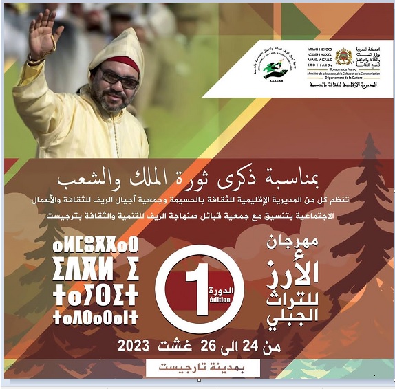 وأفاد بلاغ للمنظمين أنه بمناسبة ذكرى ثورة الملك والشعب، تنظم كل من المديرية الإقليمية للثقافة بالحسيمة وجمعية أجيال الريف للثقافة والأعمال الاجتماعية، بتنسيق مع جمعية قبائل صنهاجة الريف للتنمية والثقافة بتارجيست و مجموعة من فعاليات المجتمع المدني ، الدورة الأولى للمهرجان تحت شعار “التراث المادي واللامادي في خدمة التنمية المحلية “.